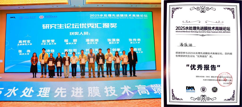 Graduate student Zhenxiang Pan won the Outstanding Presentation Award at the IWA 2025 Advanced Membrane Technology Water Treatment Summit Graduate Forum in Tianjin. Congratulations to Zhenxiang! 2025-10-27 11:49 【关闭窗口】